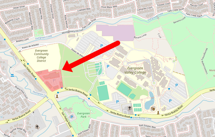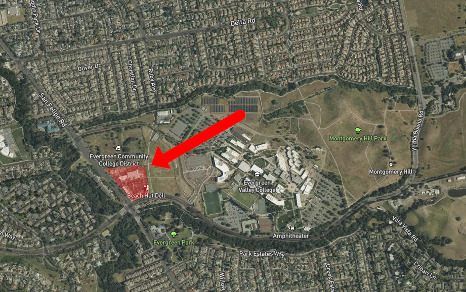 Evergreen College Land owned by SJECCD being used for a shopping center. (click to enlarge)
